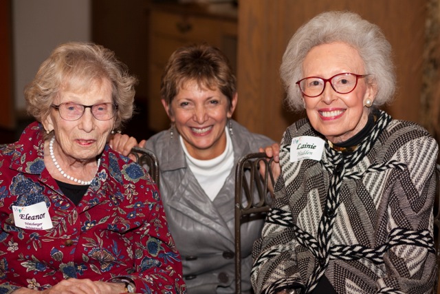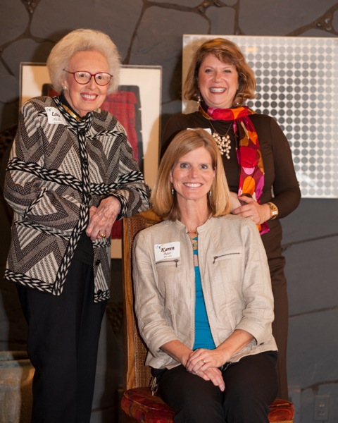 - The evening’s hosts: Lainie Hadden, HPC Board of Directors (left), Susi Meisel, HPC Board President (right) and Karen Baer, CEO (seated)